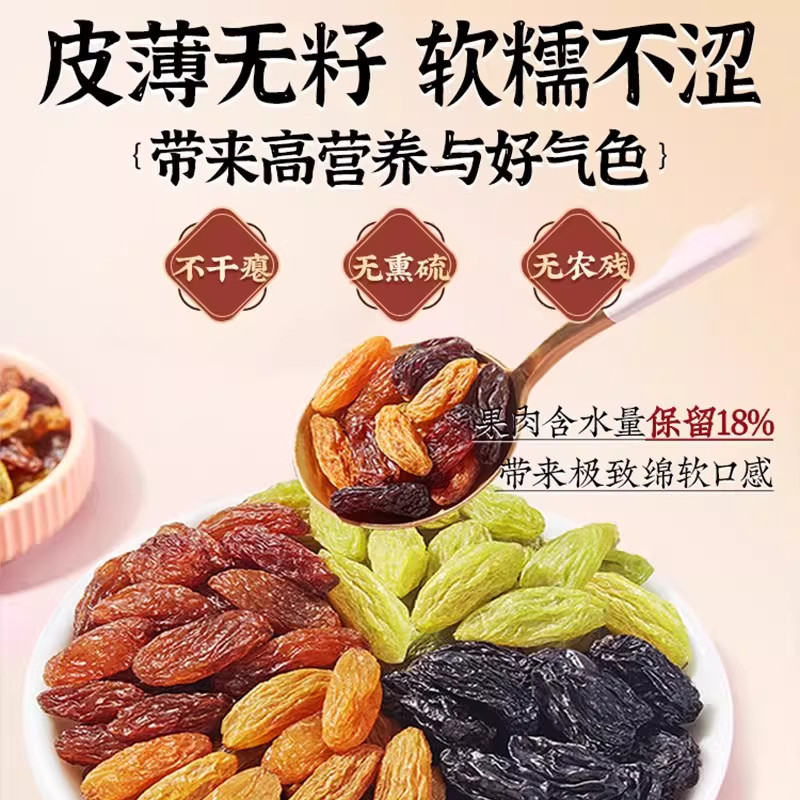 新疆多彩葡萄干吐鲁番特产混合提子干免洗干果坚果零食四色年货节