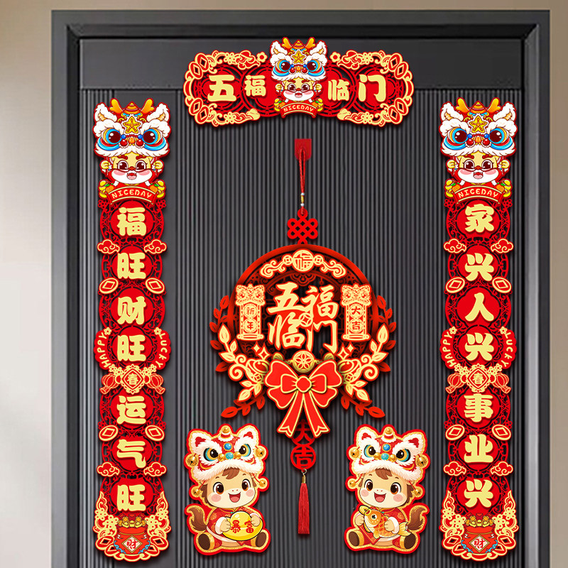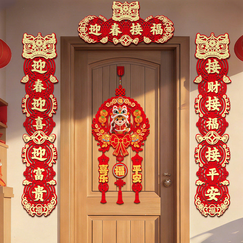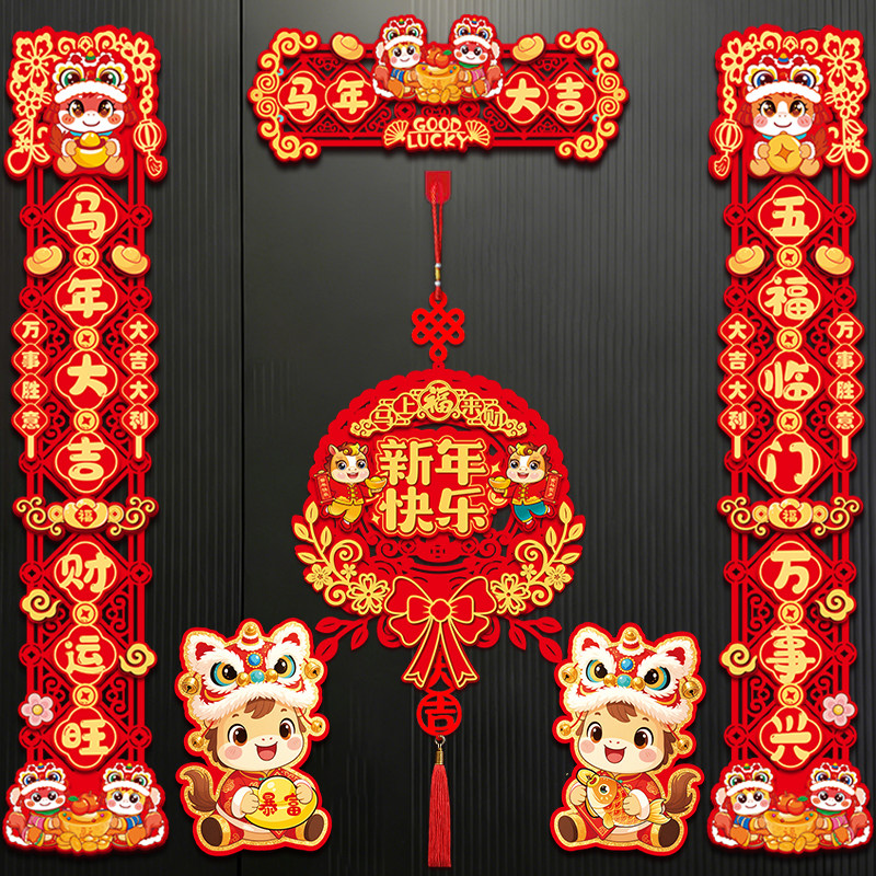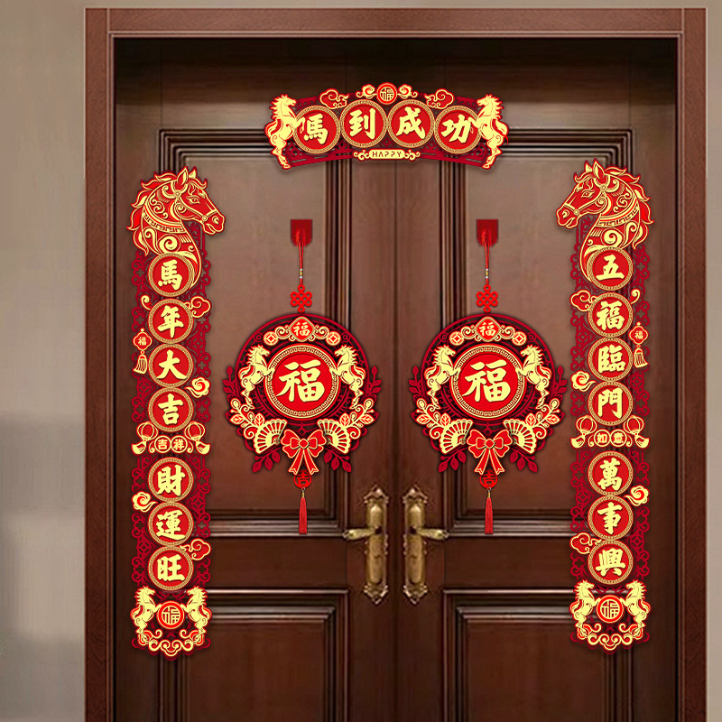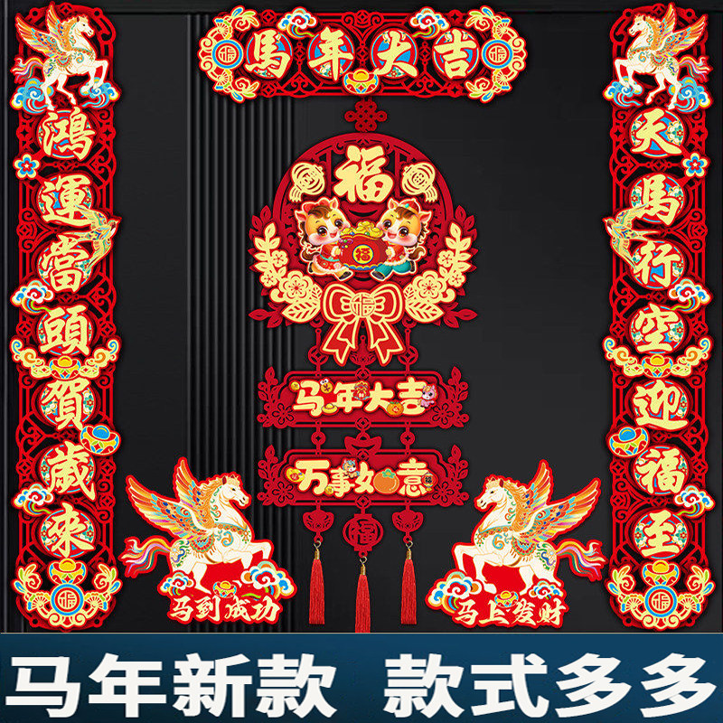 2026年马年新款磁吸款毛毡对联对贴春节喜庆装饰用品门贴过年春联