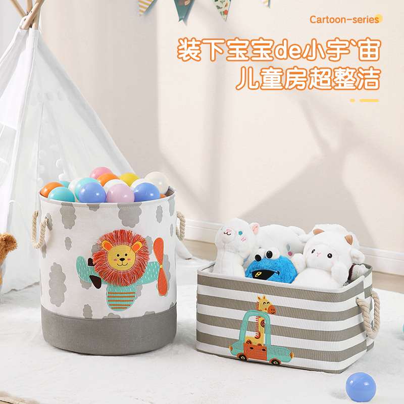 儿童玩具收纳箱宝宝脏衣服整理筐篮盒卡通大容量毛绒娃娃储物桶