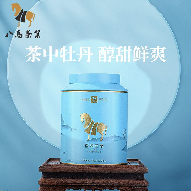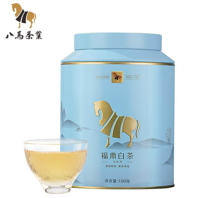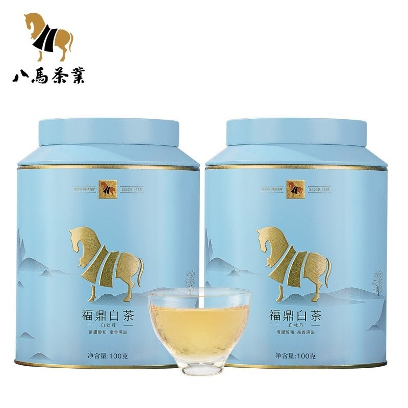 八马茶业 福鼎白茶 白牡丹 高山生态茶 金马罐系列200g(100g*2罐)