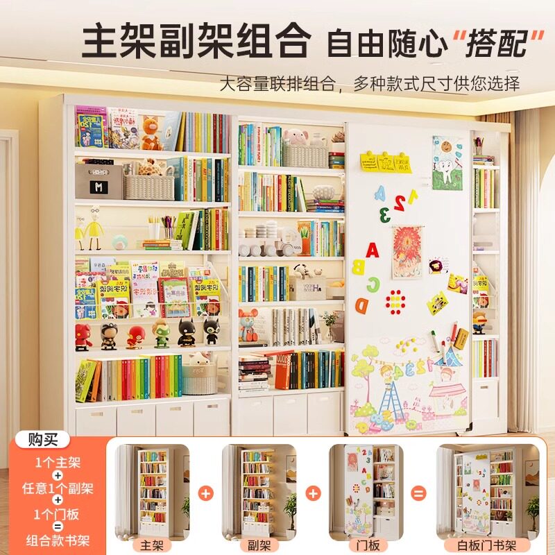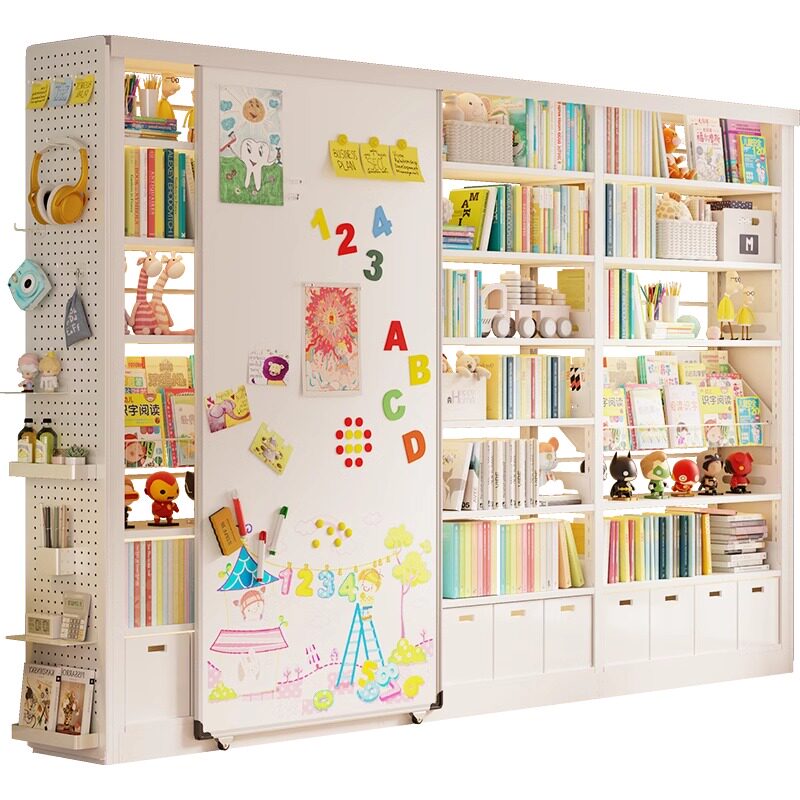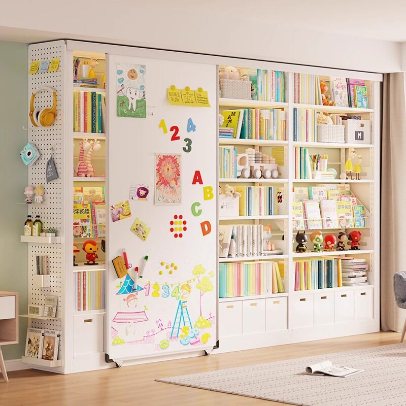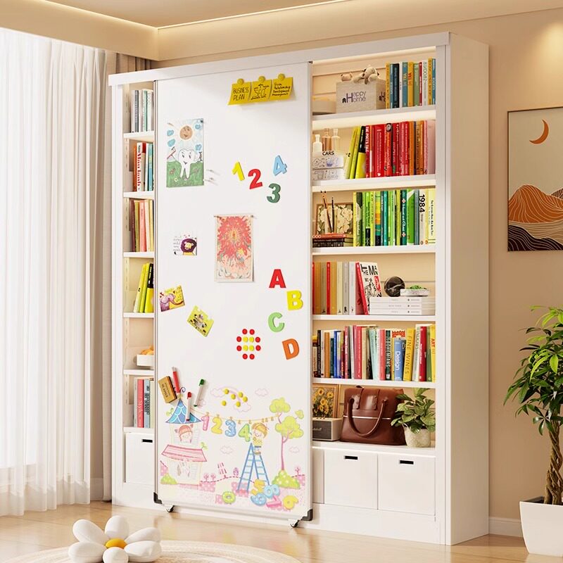 家用书架白板门移动磁吸白板推拉门儿童书柜带白板门挡板黑板定制