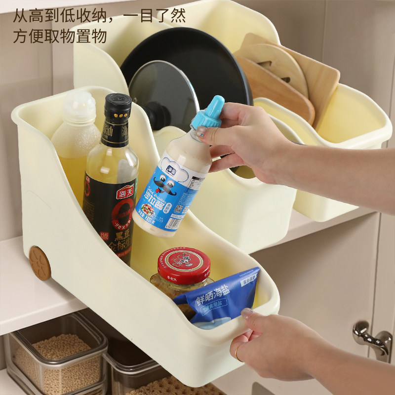 锅具收纳盒带轮厨房橱柜整理盒滚轮收纳神器拉篮储物盒置物架