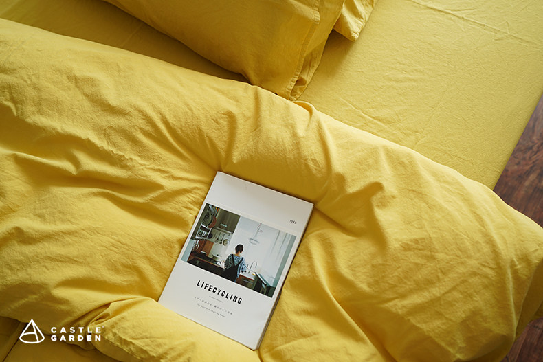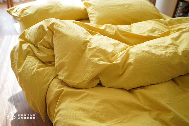 CASTLE GARDEN水洗棉纯色全棉新疆棉四件套被套+床单+枕套 姜黄