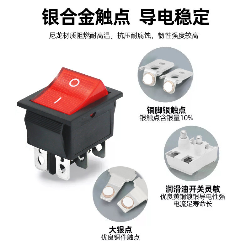 KCD4船型开关电焊机大电流电源按钮四脚带灯大功率30A翘板船形