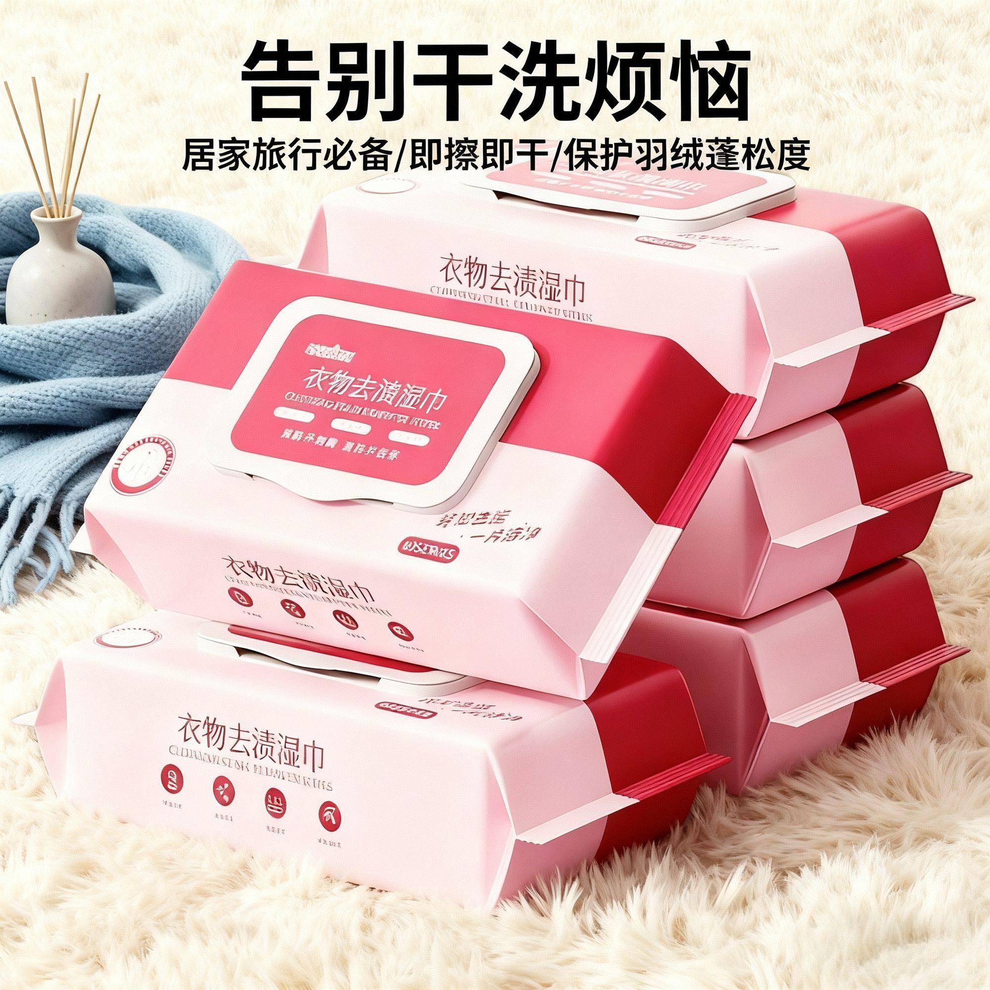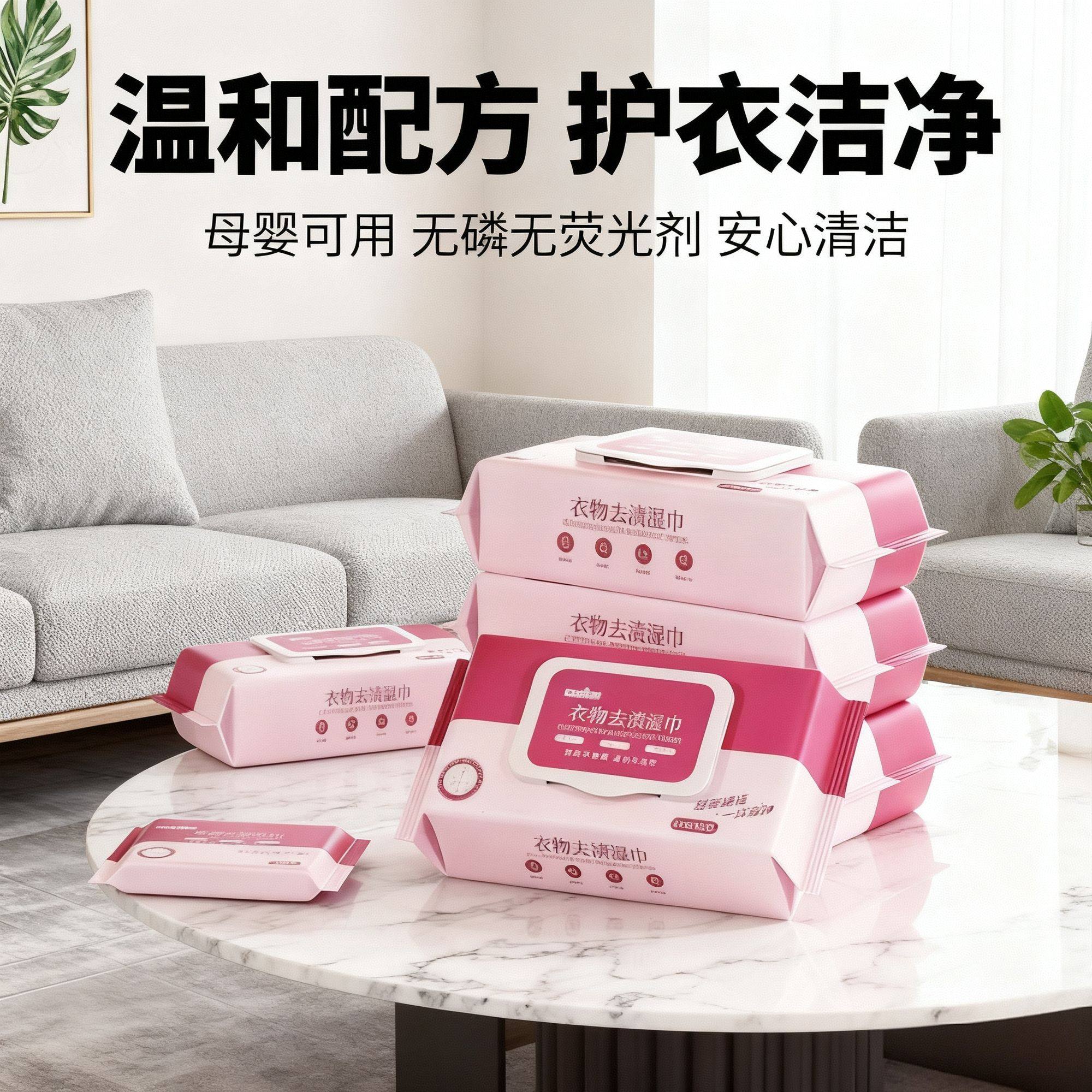 衣物去渍湿巾免洗去污强力清洁干洗神器便携高效污渍去除湿巾