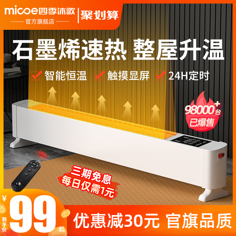 四季沐歌石墨烯踢脚线取暖器暖风机速热电暖气家用节能省电暖神器