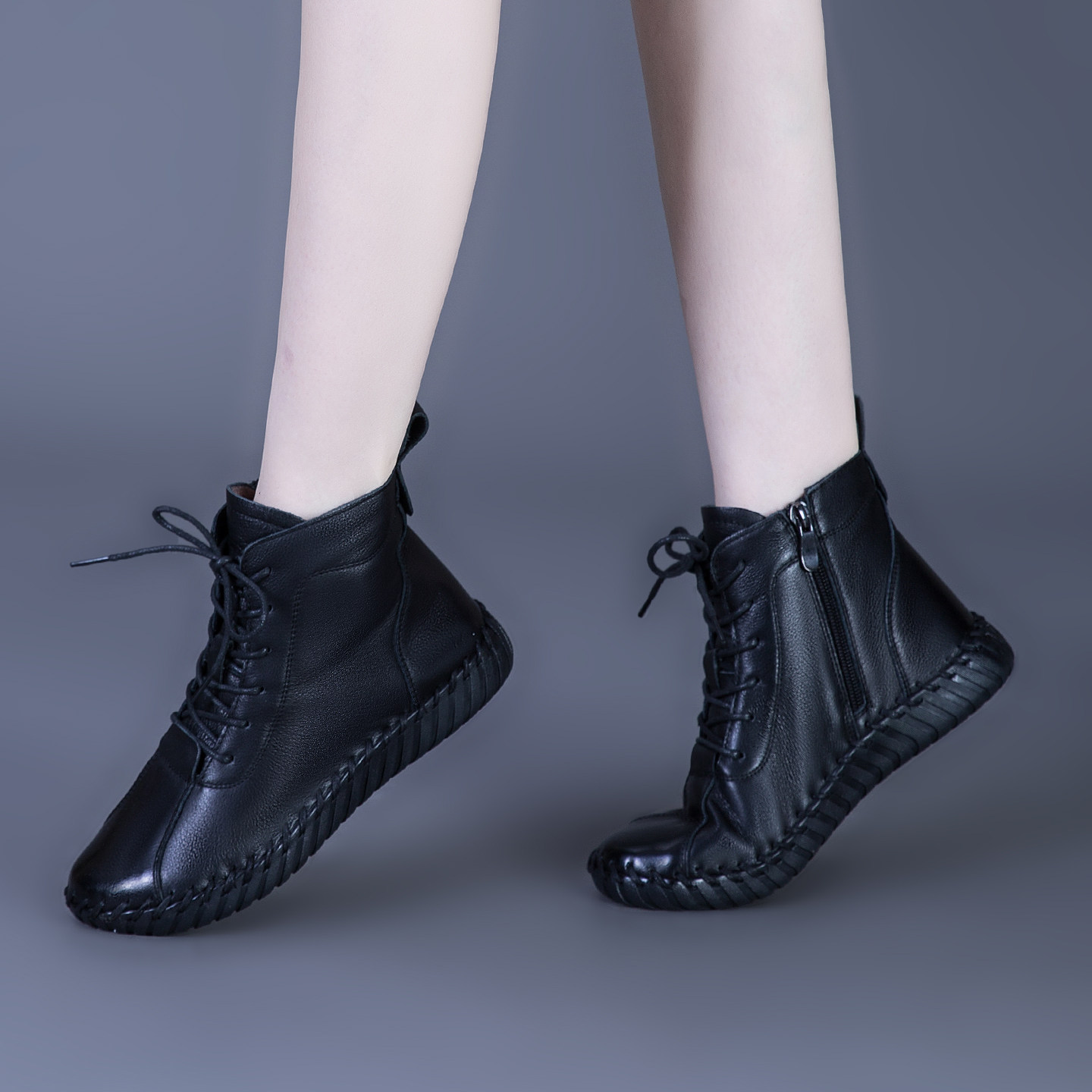 短靴真皮女鞋2025新款马丁靴软底休闲女士妈妈秋头层牛皮靴子皮鞋