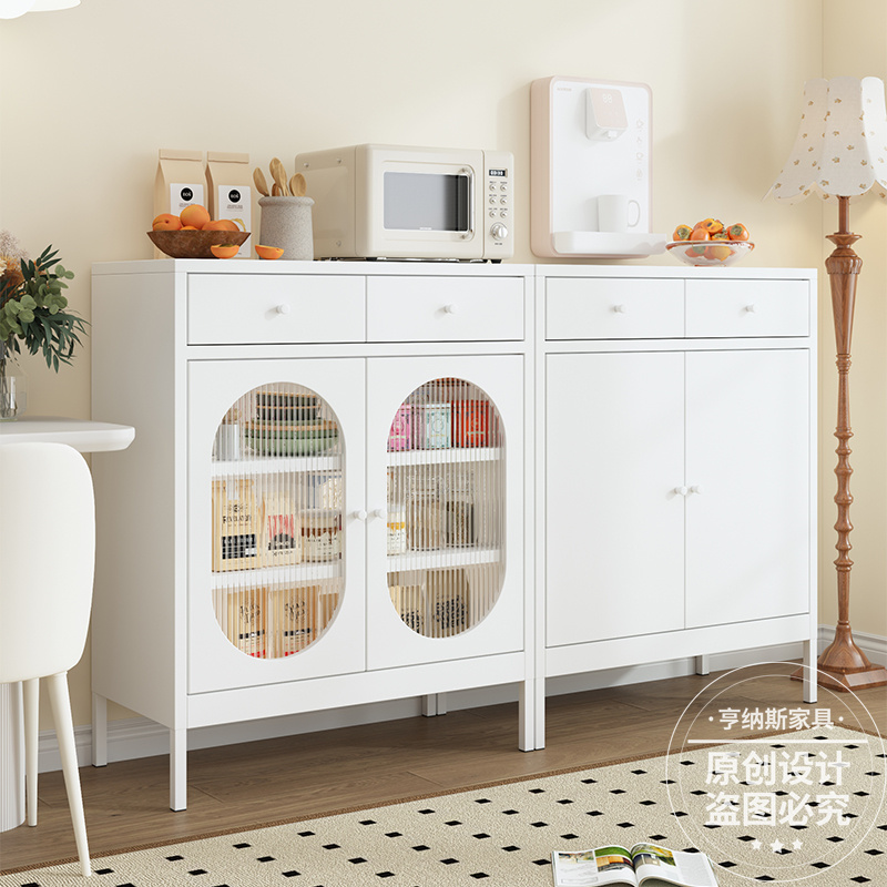 奶油风铁艺餐边柜靠墙一体储物柜客厅多层收纳柜家用厨房置物柜