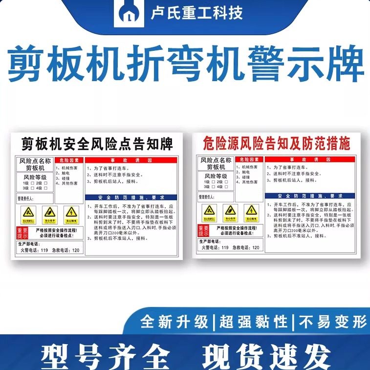 折弯机安全标识剪板机警示牌不干胶风险贴机械设备警告操作标牌