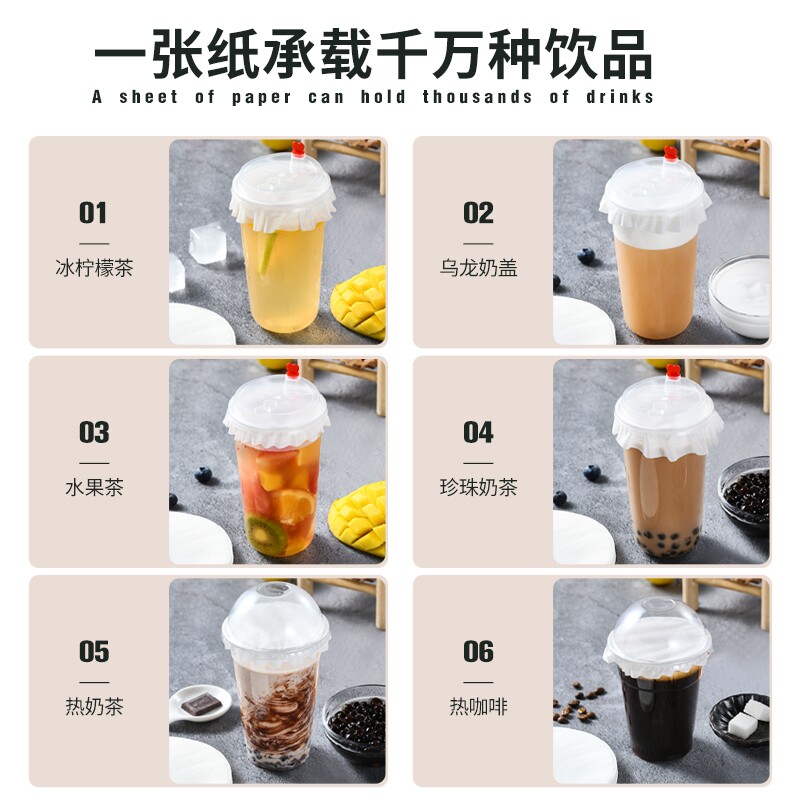一次性外卖密封防漏纸奶茶咖啡杯一次性封口贴纸杯盖防溢垫片封口