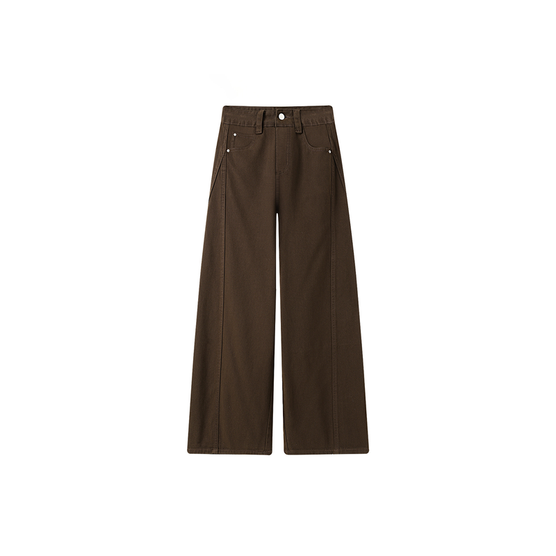 咖色阔腿牛仔裤女秋冬加绒胖妹妹梨型身材mm高腰宽松显瘦弯刀裤子