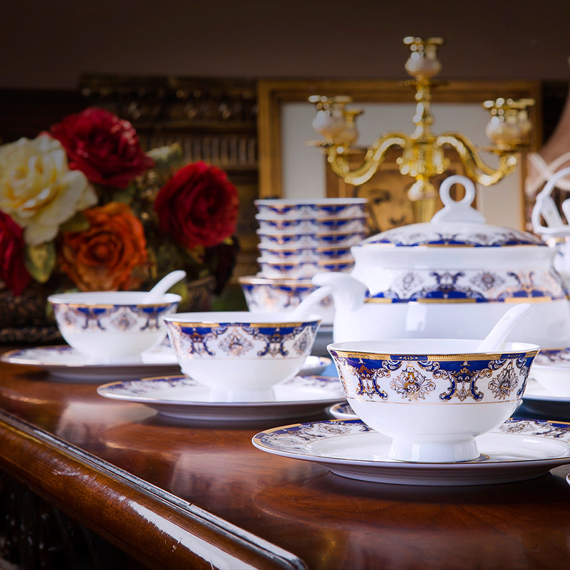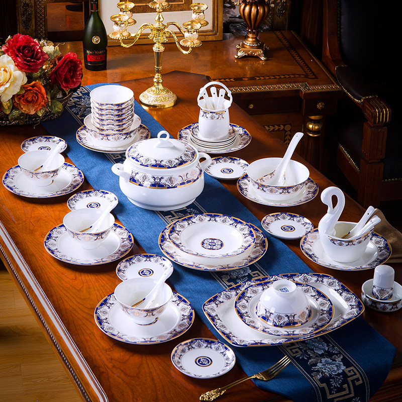 自由组合景德镇骨瓷餐具碗碟套装家用轻奢盘筷子中欧式高档陶瓷器