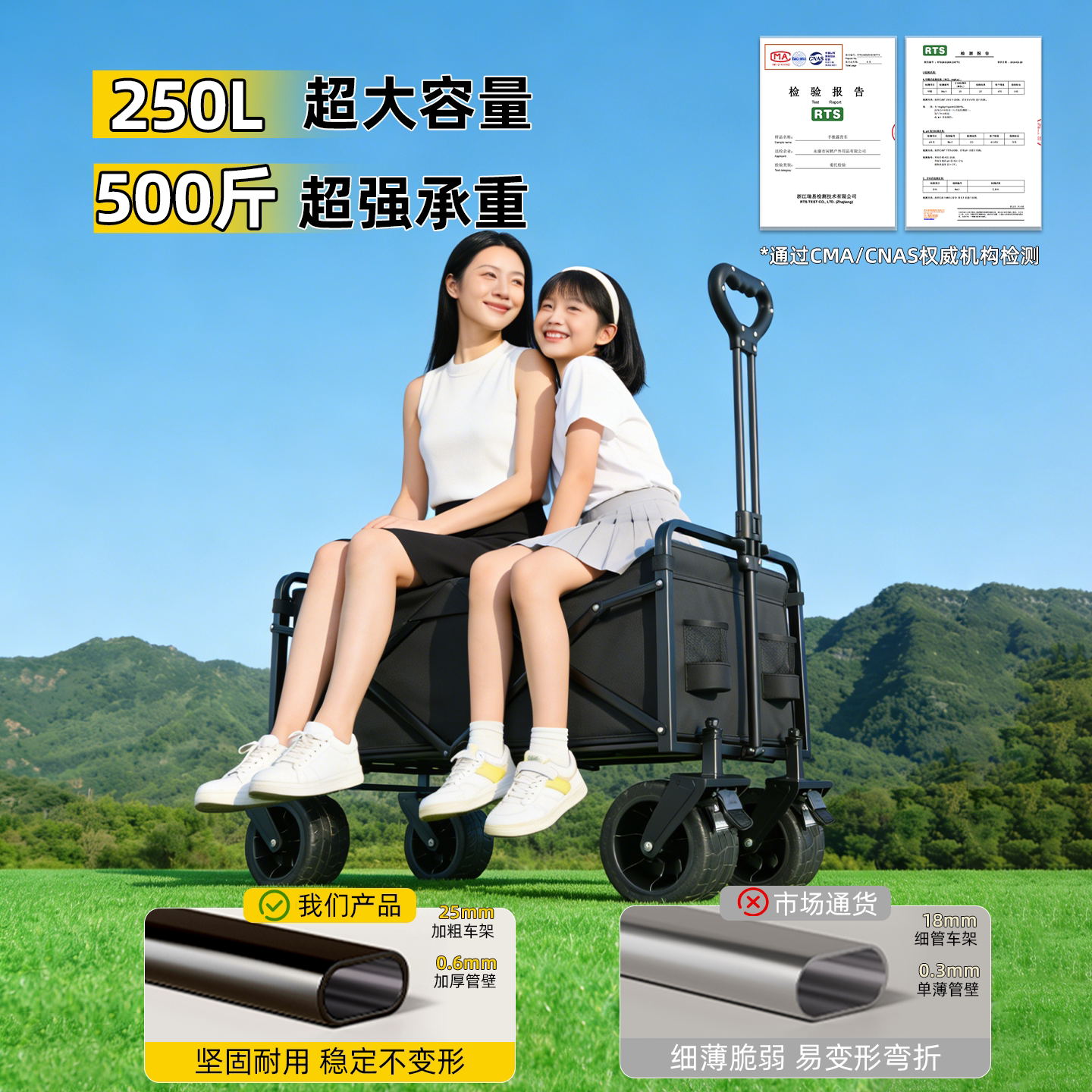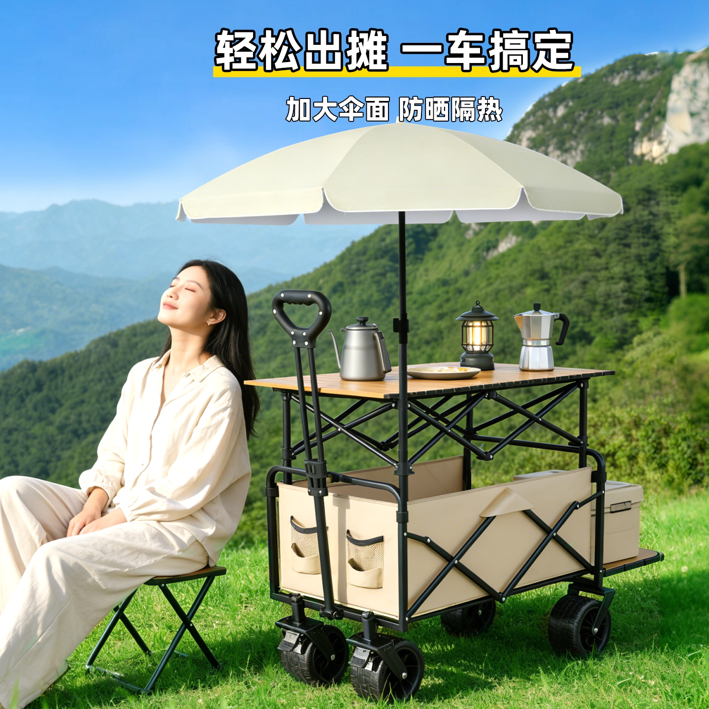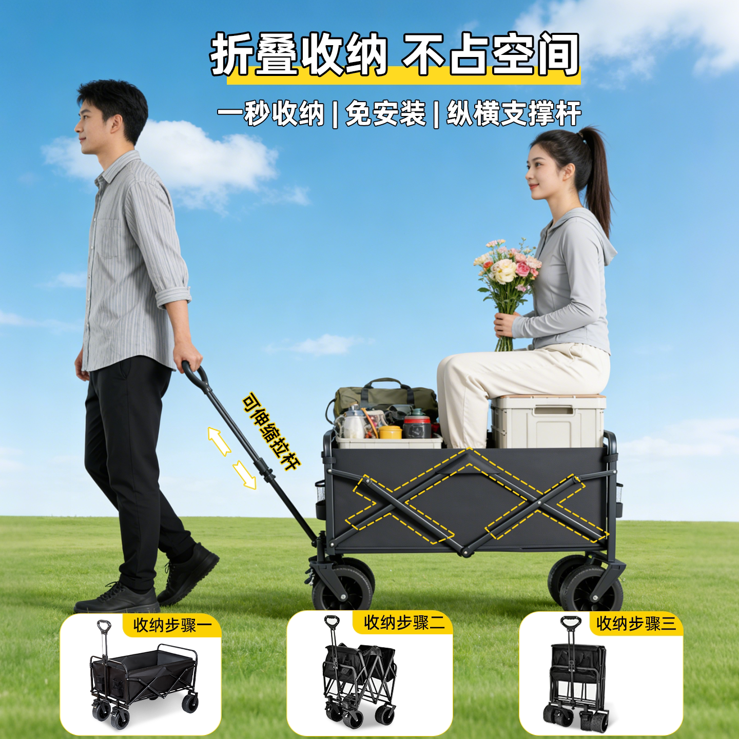 户外露营车折叠野餐营地车旅行拖车儿童可躺摆摊手拉车快递小推车
