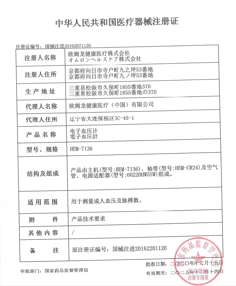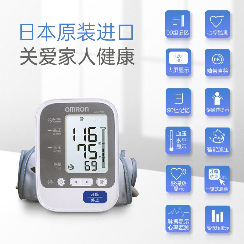 欧姆龙日本原装进口电子血压计7136家用高精准测量仪机医疗用正品