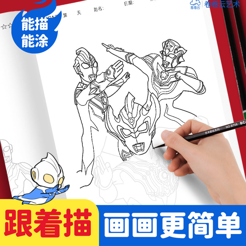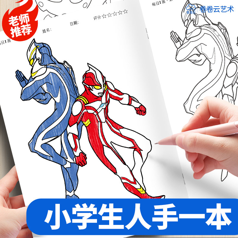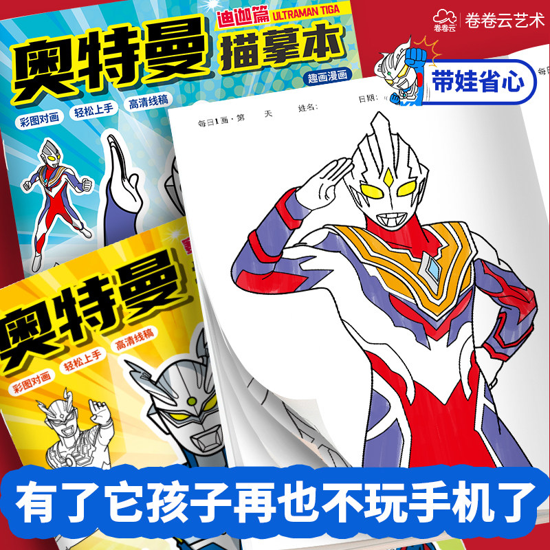 迪迦赛罗奥特曼线稿描摹本小学生基础入门临摹画册儿童手绘画画本动漫卡通涂色涂鸦描画幼儿园男孩图画填色本