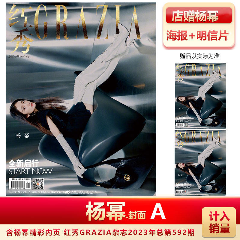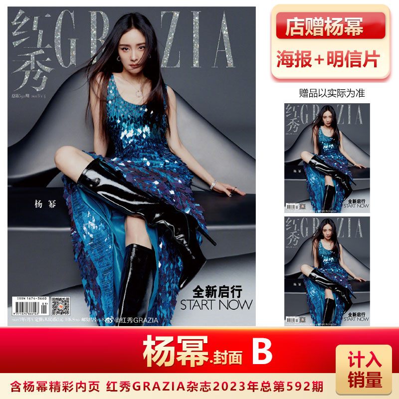 时尚芭莎二月刊 杨幂封面+店赠海报+明信片+飞机盒 计入销量 时尚芭莎/时装女士/红秀杂志2023年2/1月/592期 杨幂A/B封面 二月刊