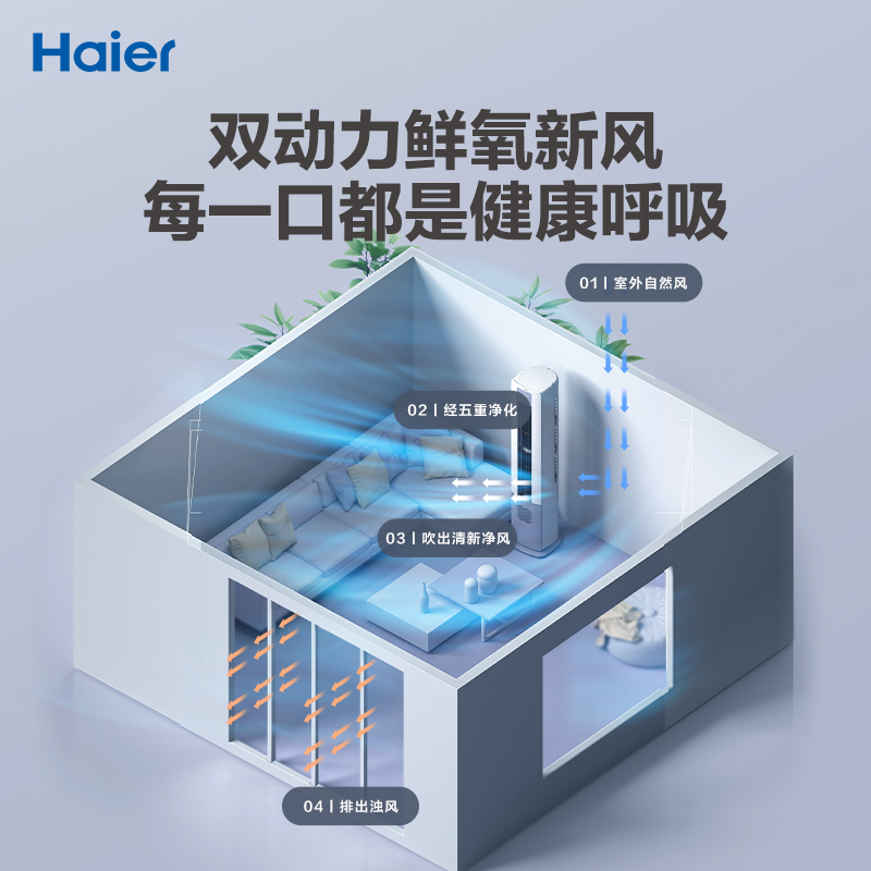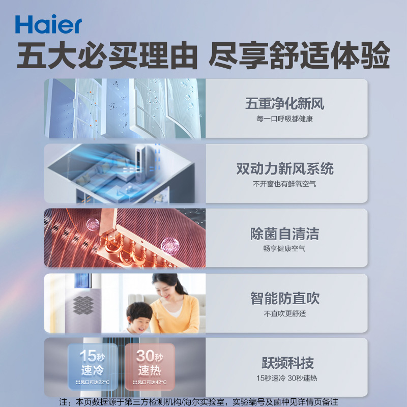 【5重净化】海尔3匹立式空调变频一级柜机雷神者新风空调72LBC