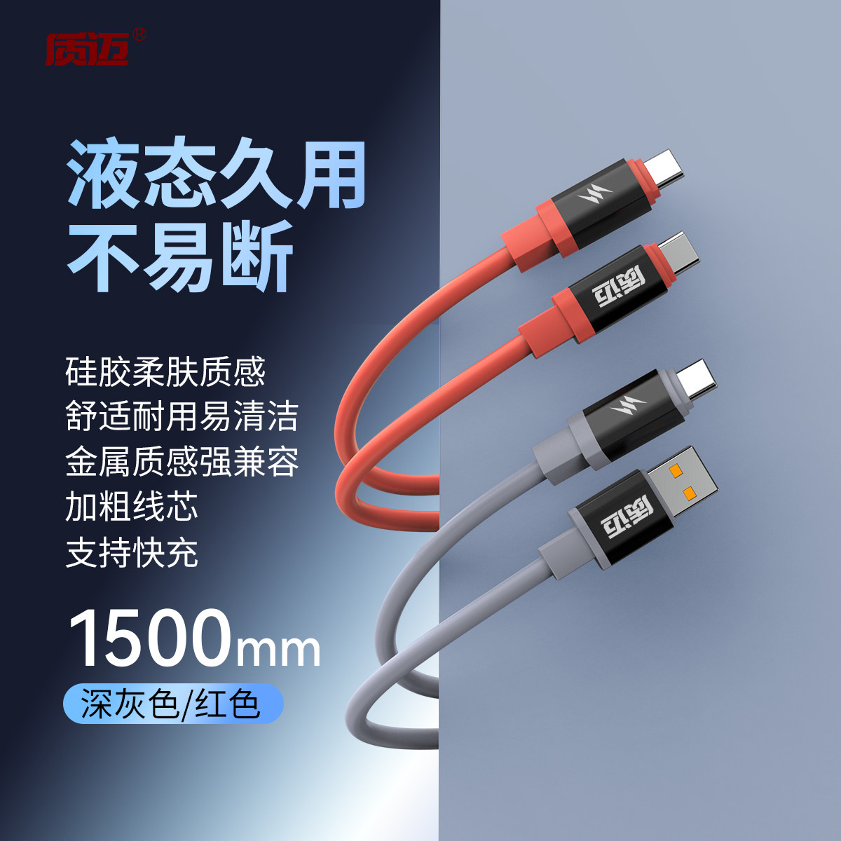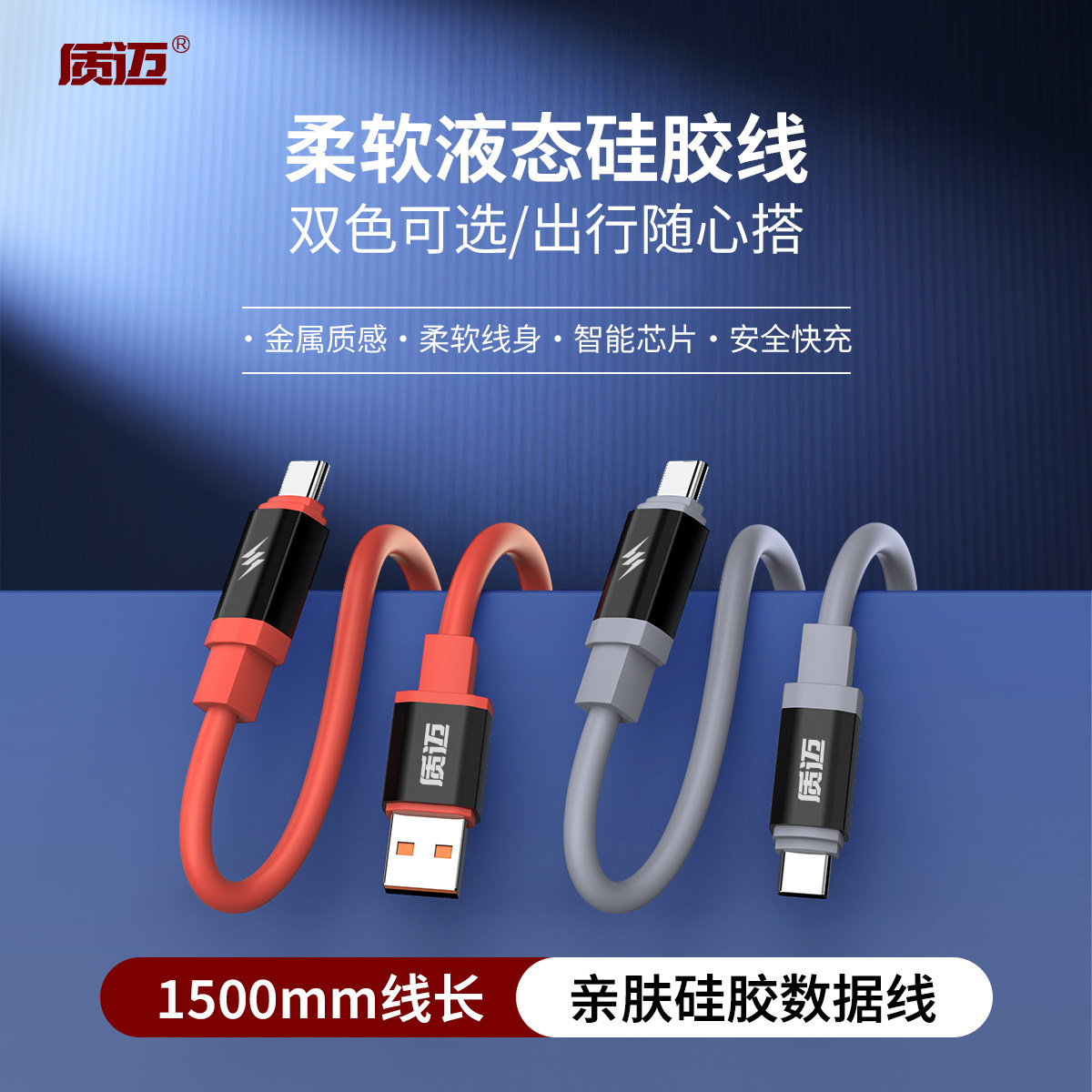 质迈1.5米硅胶数据线手机快充线typec双口USB-C接头65W适用小米华为苹果通用闪充充电线