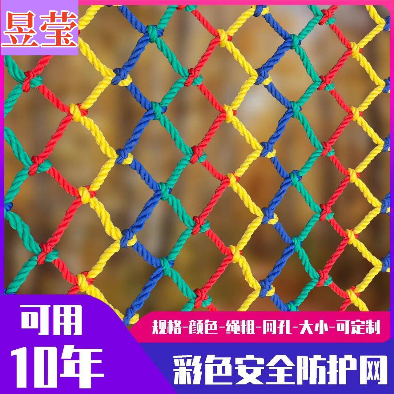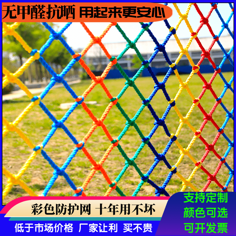 儿童彩色安全网阳台天井楼梯防护网防坠网幼儿园护栏防摔尼龙网绳