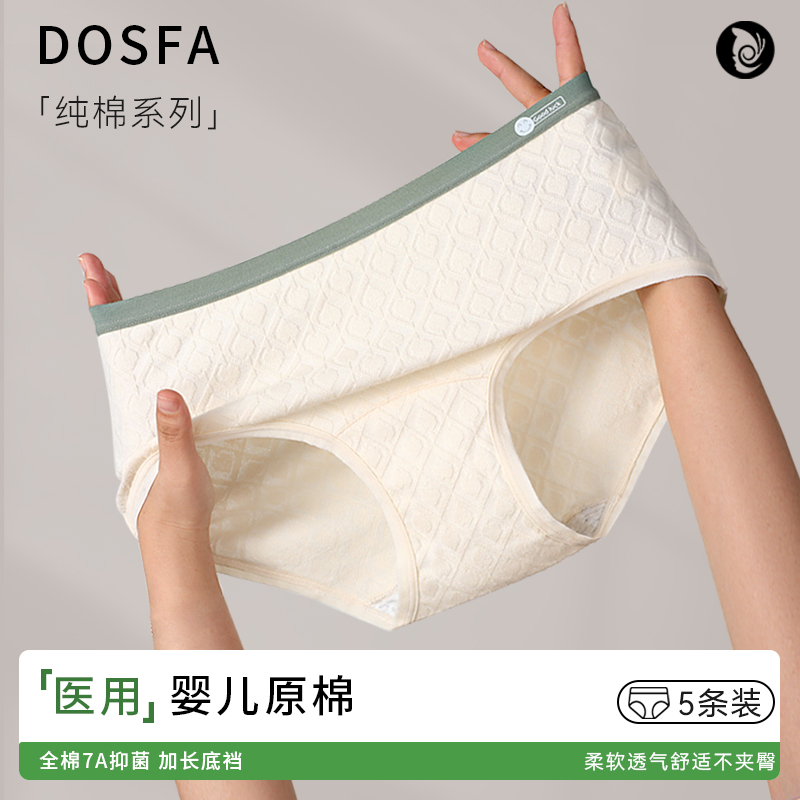 DOSFA内裤女士纯棉7A抗菌全棉加长裆女生三角裤中腰无痕大码裤头
