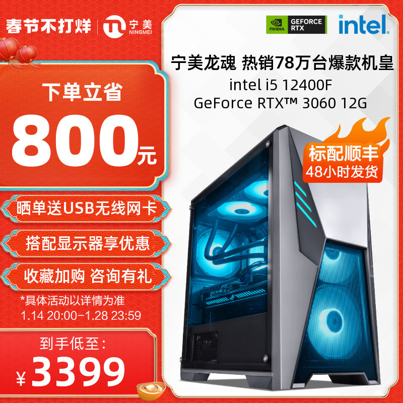 宁美国度龙魂 i5 12400F升13400F/1660S/3050/2060/RTX3060TI电脑主机直播台式设计师全套游戏整机DIY组装机