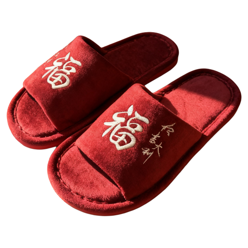新年红拖鞋本命年秋冬季2026过年棉拖喜庆走红运中式居家室内酒红