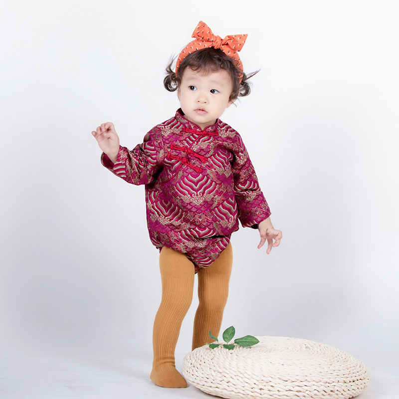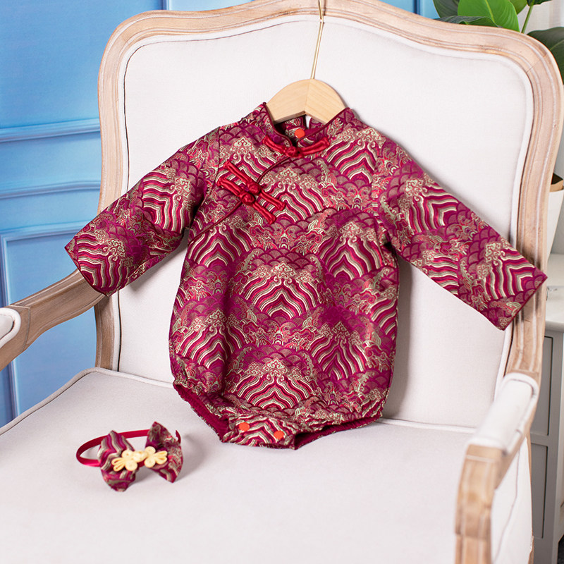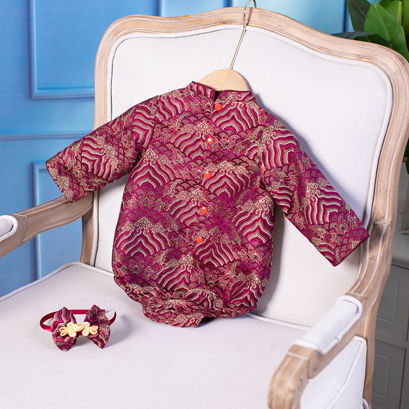 2022小宝宝周岁礼服包屁衣一周百天宴中式旗袍中国风婴儿新年衣服