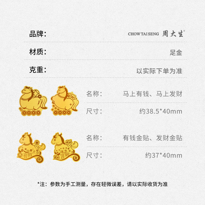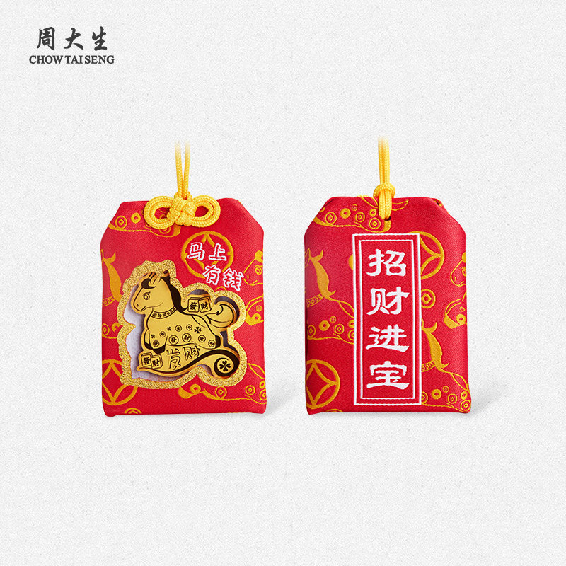 周大生黄金金贴趣味手机贴生肖马御守送女友老婆妈妈节日礼物