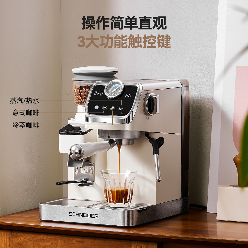 SCHNEIDER小天使咖啡机研磨一体家用小型半自动意式冷萃58MM礼物