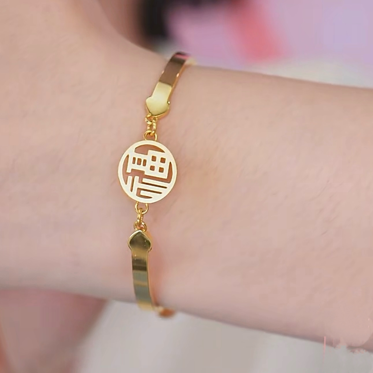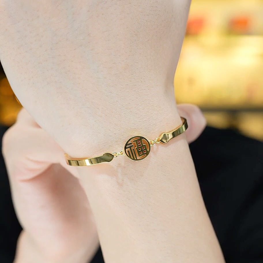 旭平福字仿黄金色手链女轻奢小众高级感气质手饰
