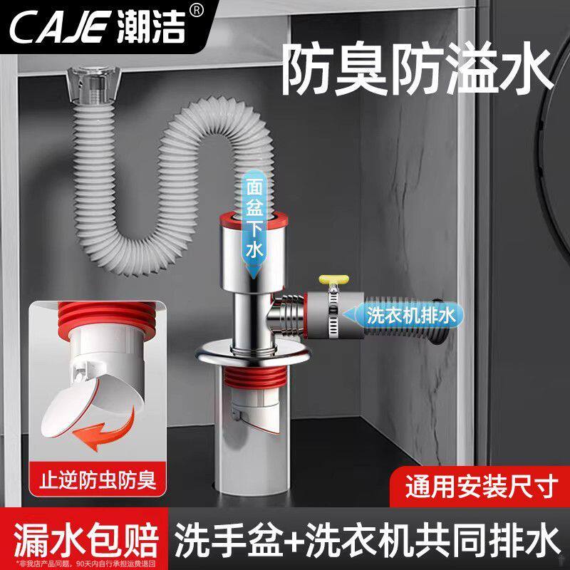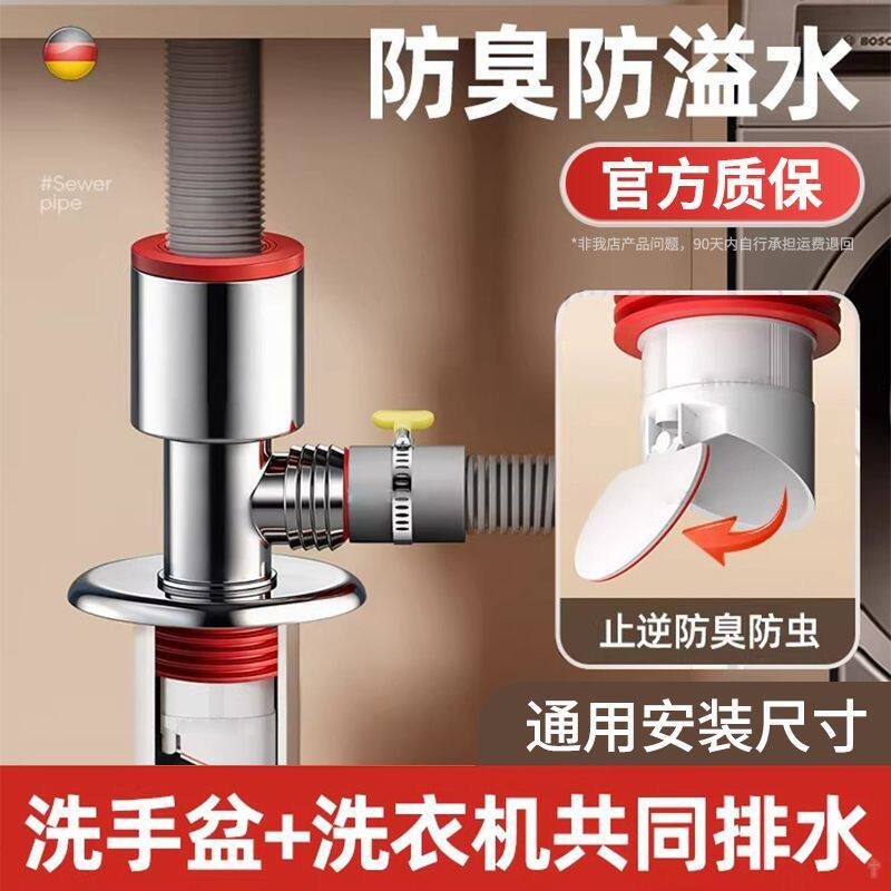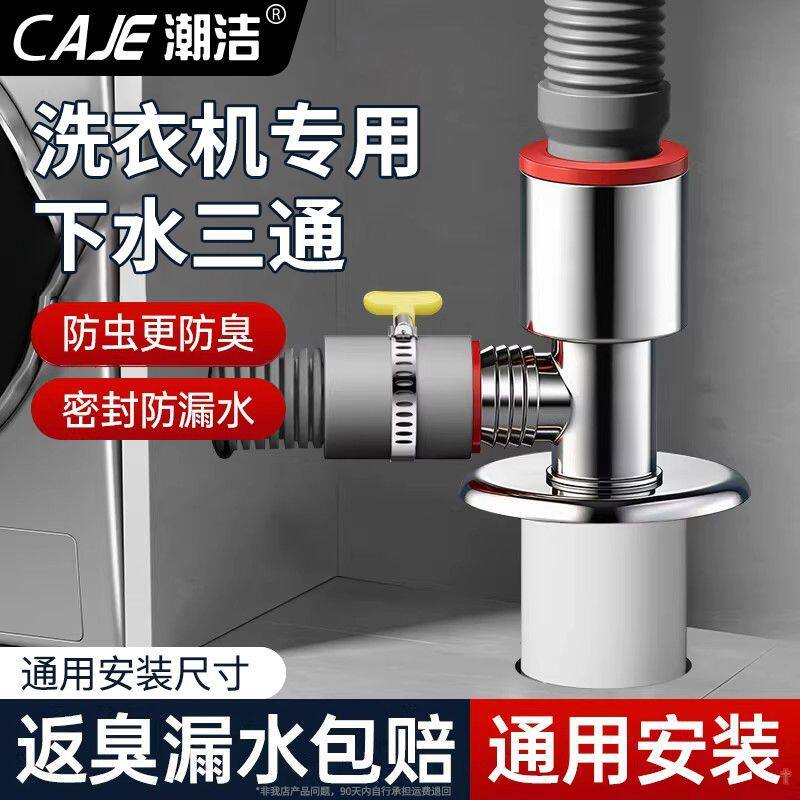 潮洁德国阳台洗衣机下水管地漏三通接头浴室防返臭防溢水分流神器