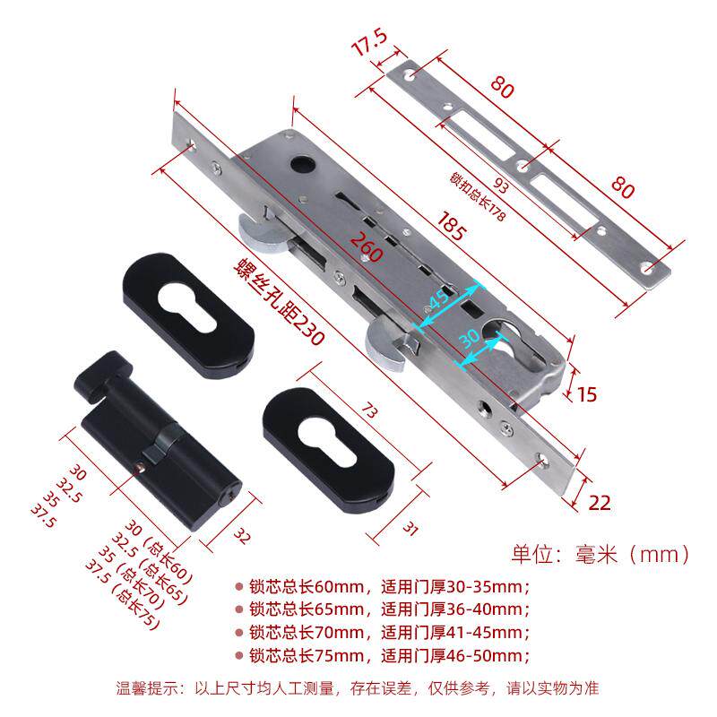 推拉门锁重型门一字锁双钩锁纯铜锁芯85308535断桥不锈钢双钩锁体