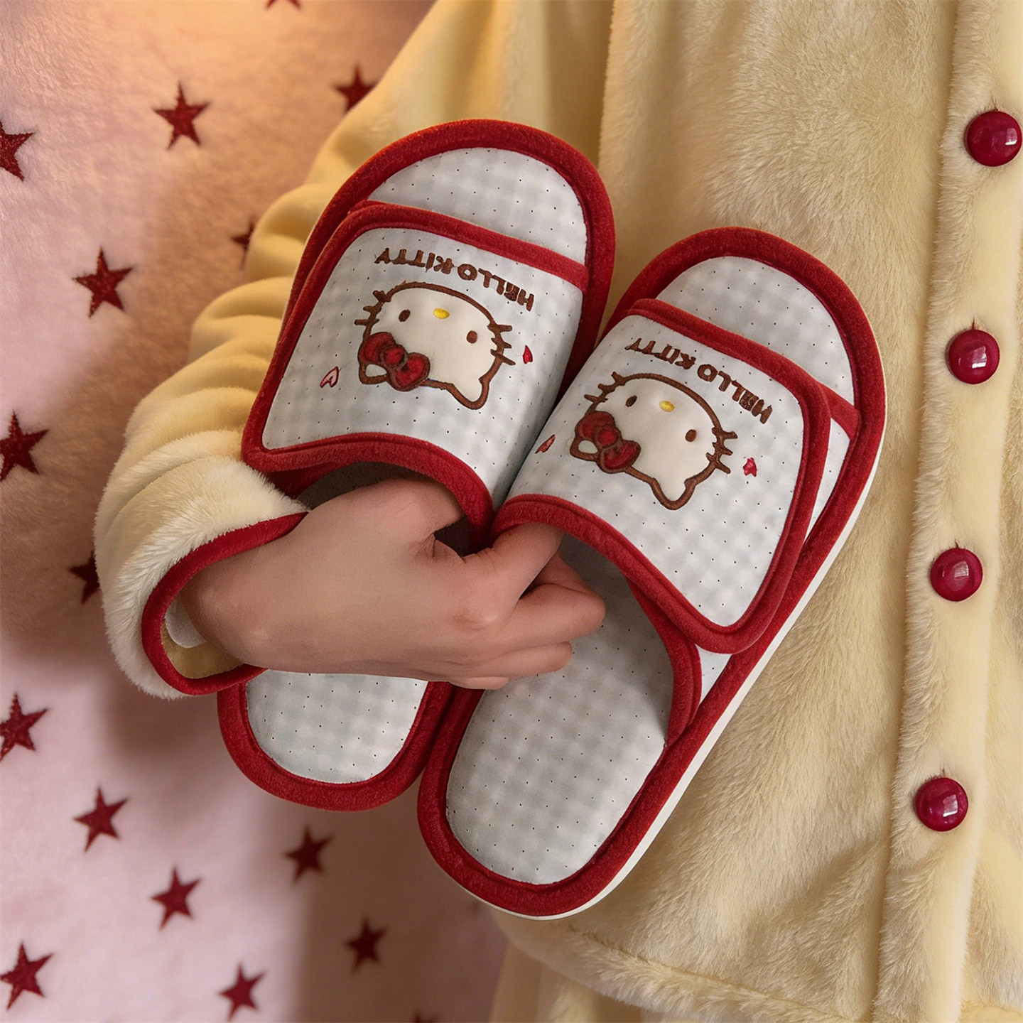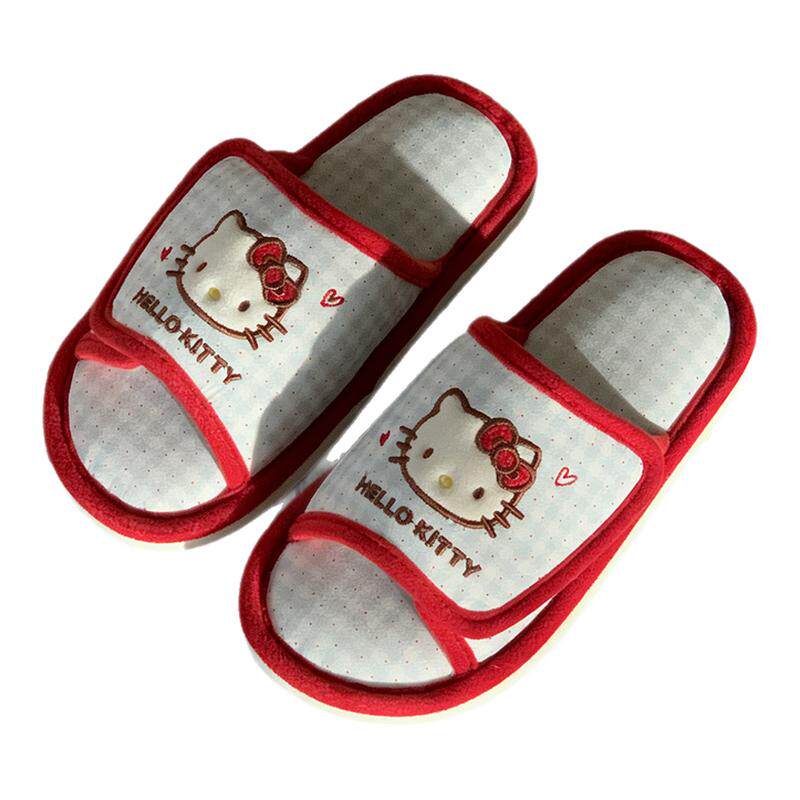 细细条 网红正版HelloKitty棉麻拖鞋女ins防滑吸汗四季通用地板鞋