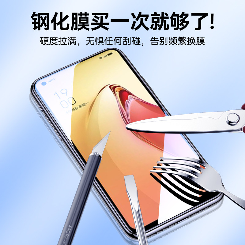 适用opporeno8钢化膜reno8pro+手机膜RENO6por+5g水凝5z软膜rone7刚化5k玻璃opooreno3p元气版屏保贴膜2z防摔
