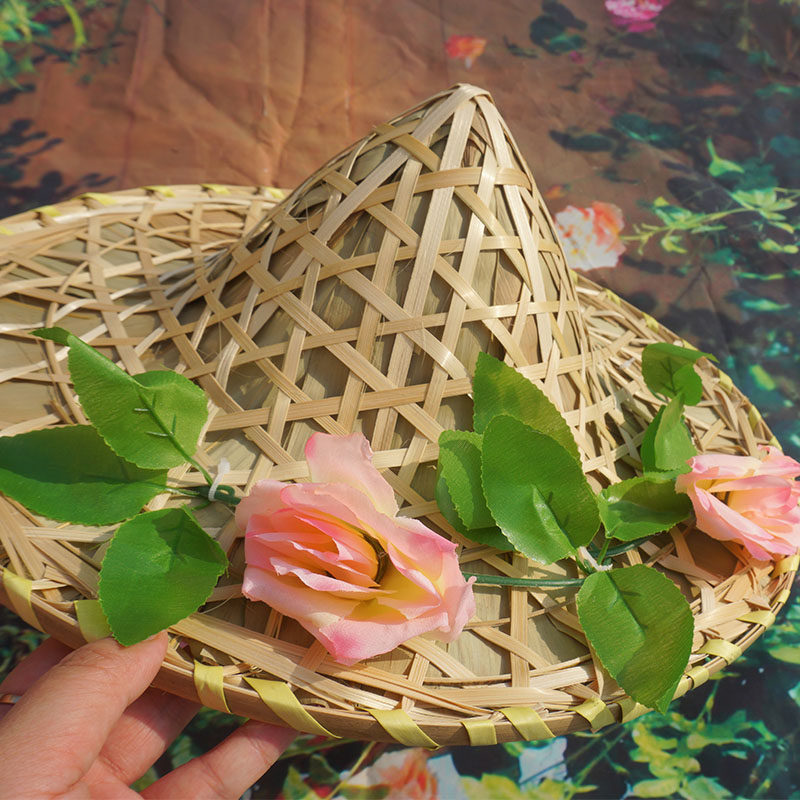竹编红军古风斗笠帽儿童舞台演出傣族舞蹈道具成人广场舞表演草帽