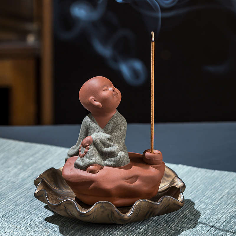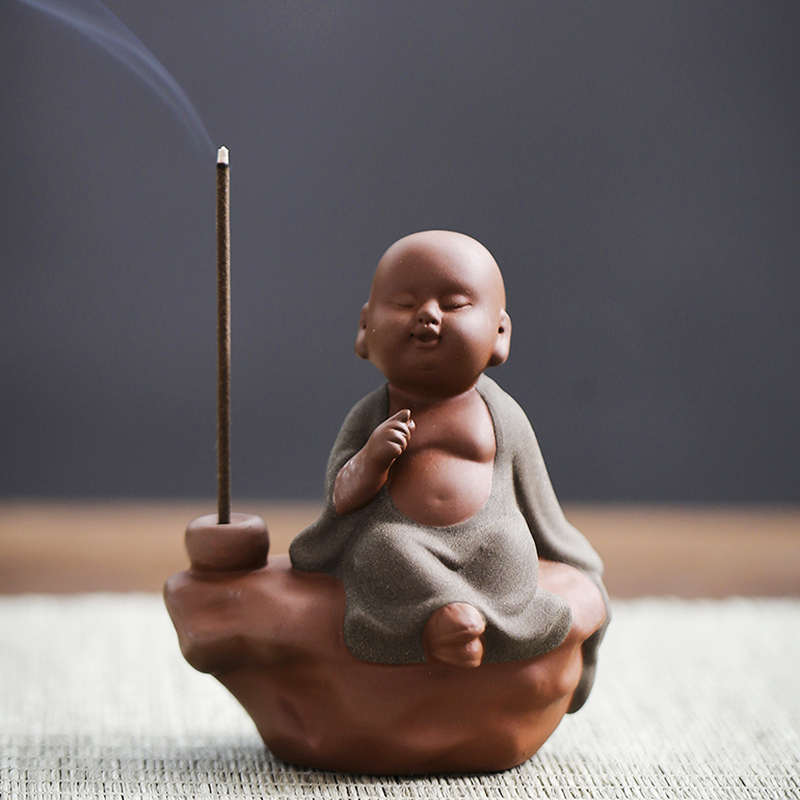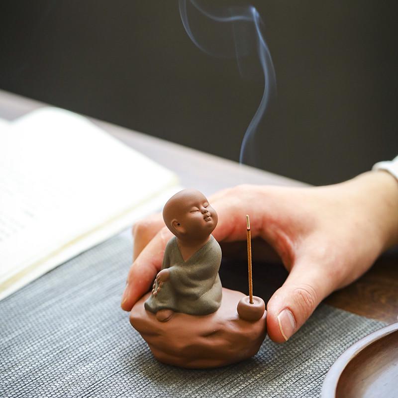 创意家居饰品香托香盘香座香插紫砂小和尚线香炉茶道家居中式摆件