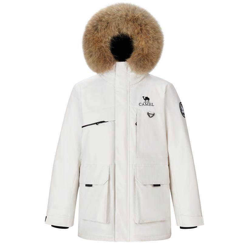 骆驼男装派克鹅绒服男冬季2025新款毛领工装加厚中长款羽绒外套男