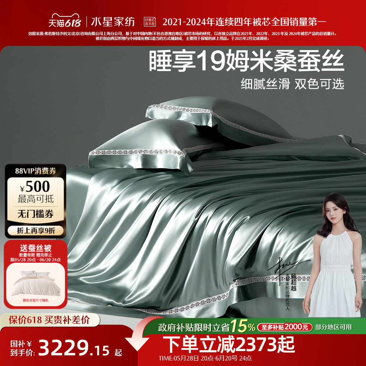 水星家纺真丝四件套100%桑蚕丝套件奢华贡缎高端床单被套床上用品