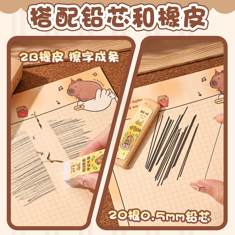 国风自动铅笔套装高颜值小学生专用0.5活动笔hb铅笔可爱无毒全自动不断芯男女生矫正握姿自动出芯绘图画美术