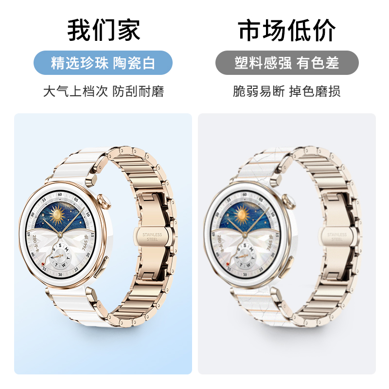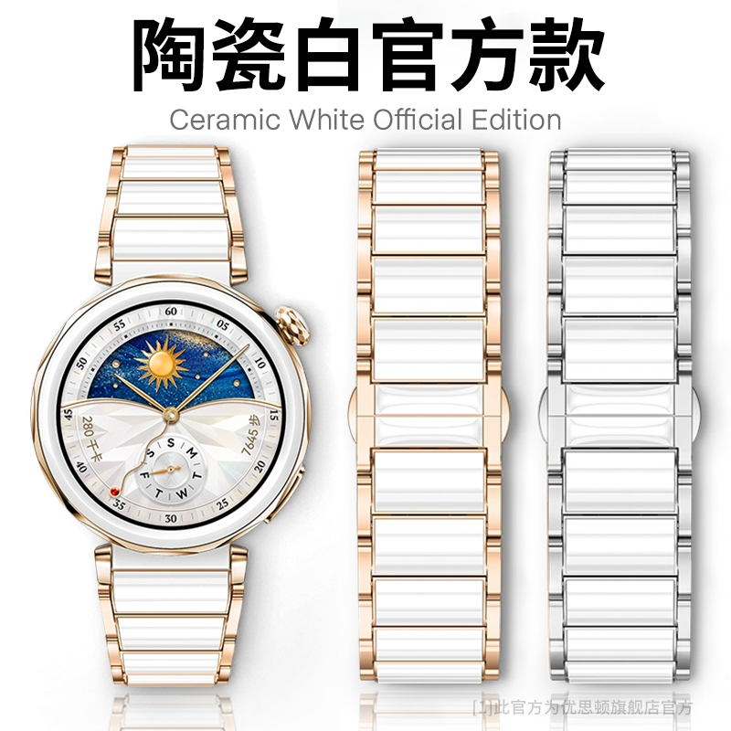 适用华为GT5表带gt5pro手表女款女士陶瓷白watchgt5智能运动腕表女式男gt4夏天高级新款42/41mm专用同款表链