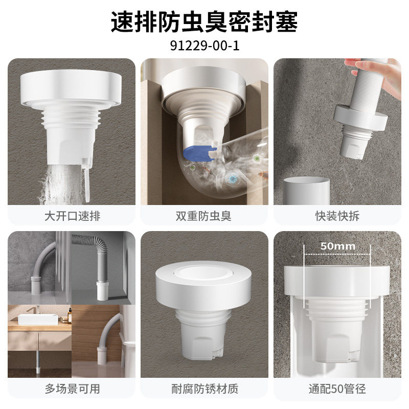 九牧下水道密封圈下水管防臭密封塞厨房洗衣机排污管硅胶防虫盖子