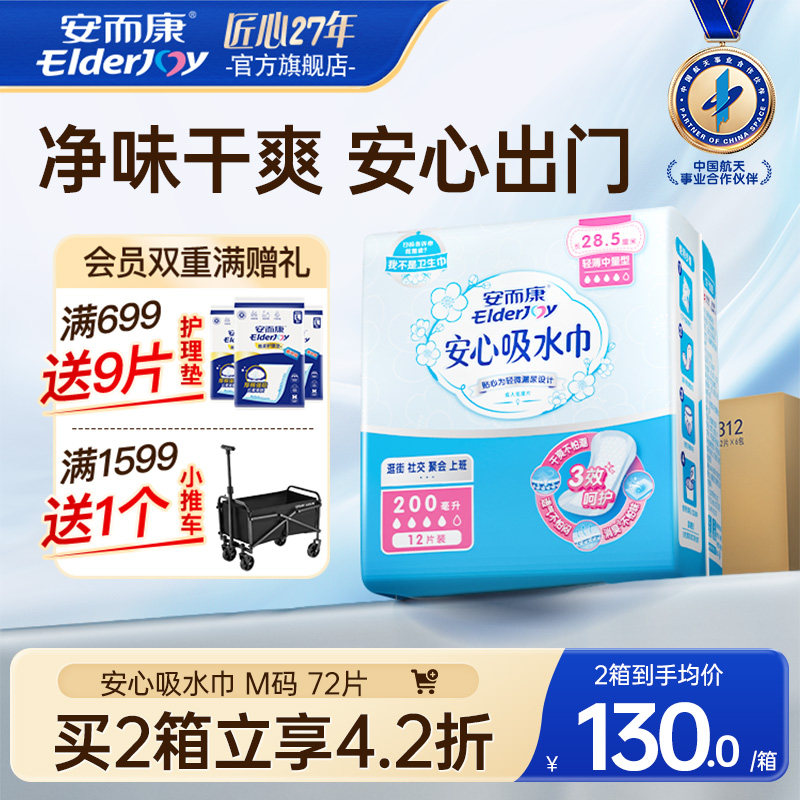 安而康女性成人漏尿吸水巾卫生巾孕产妇呵护巾护垫尿垫纸尿片72片