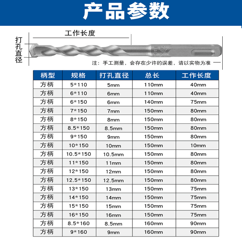 方大王电锤钻头非标钻头电锤冲击钻头整盒7厘13厘12.5mm9mm15钻头