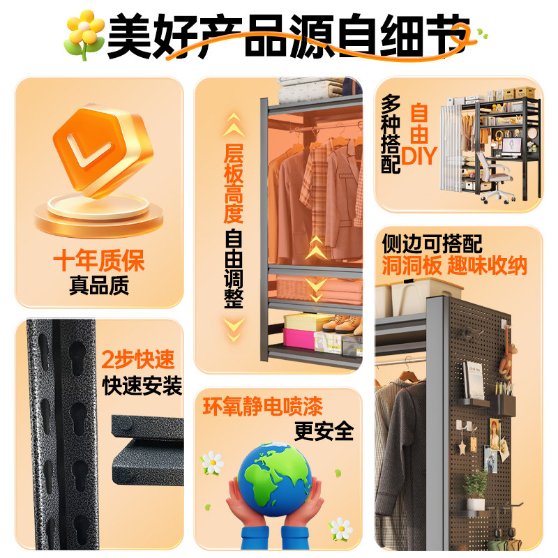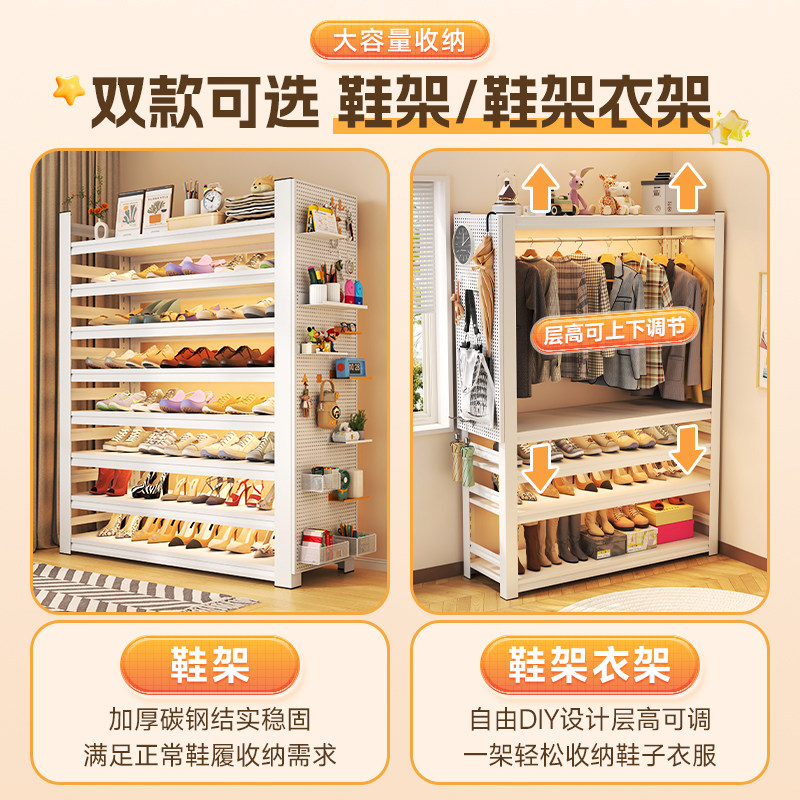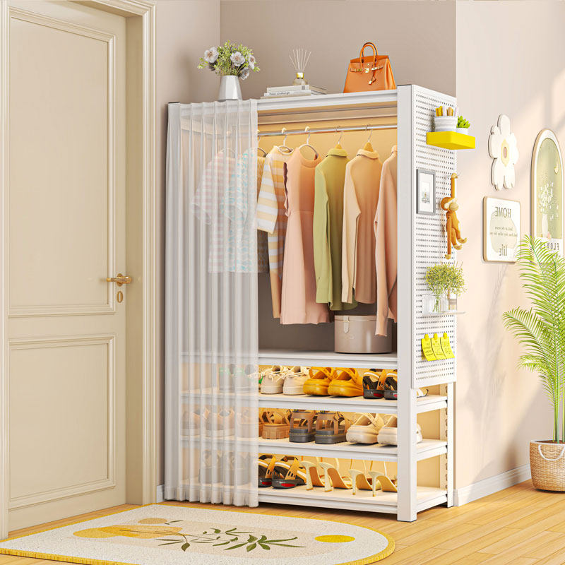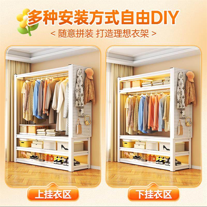 家用门口鞋架挂衣架铁艺简易洞洞板衣柜落地置物架卧室衣帽间鞋柜