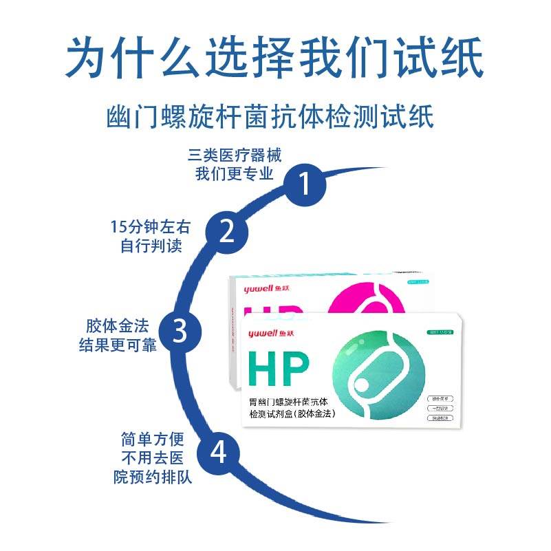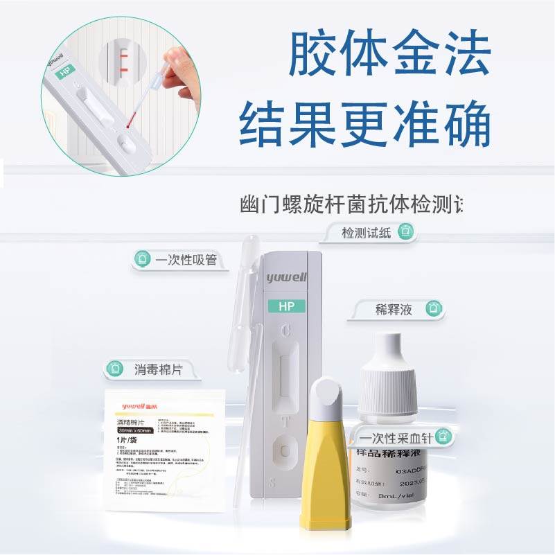 鱼跃胃幽门螺旋杆菌检测试纸血检抗体测试盒自测非碳14吹气呼吸卡