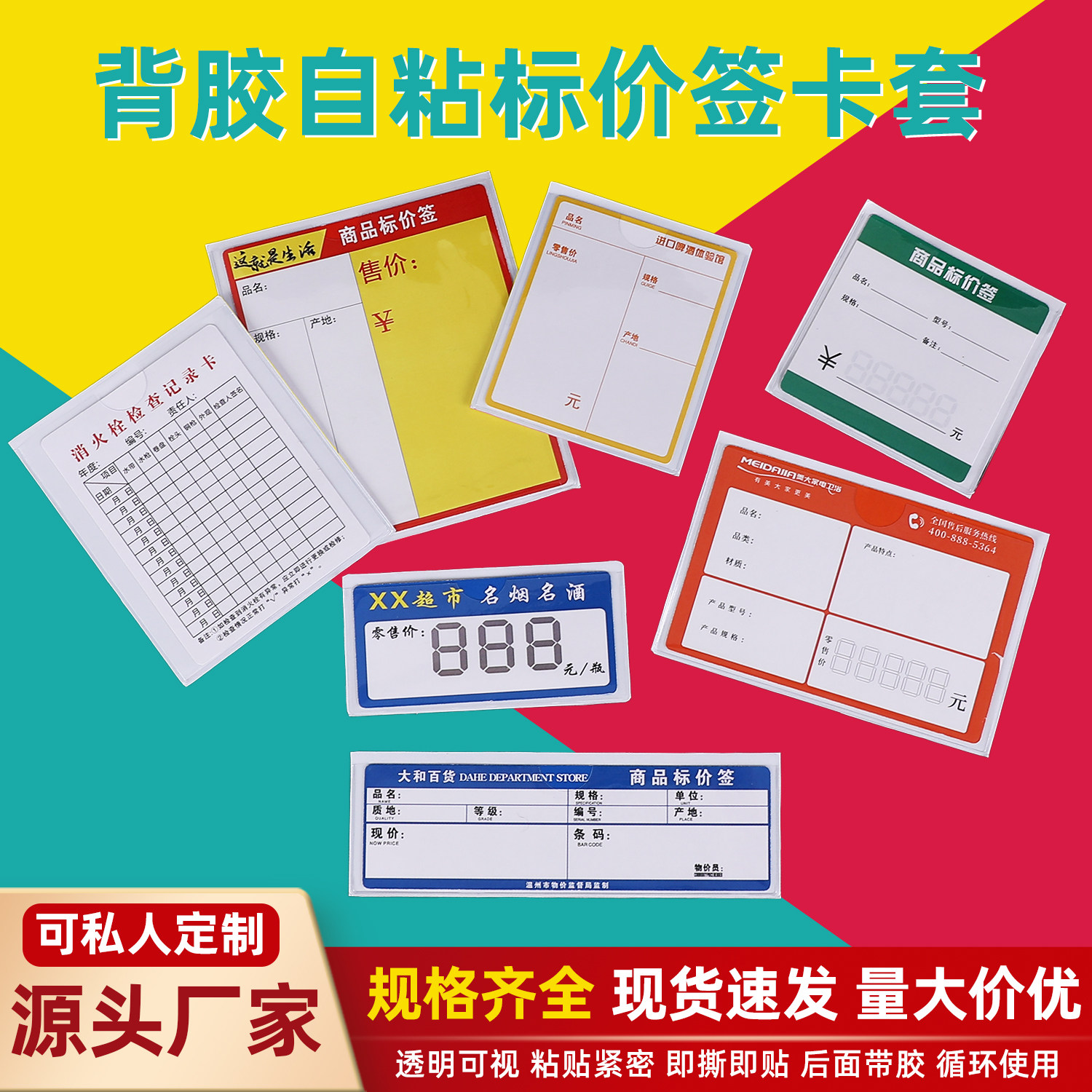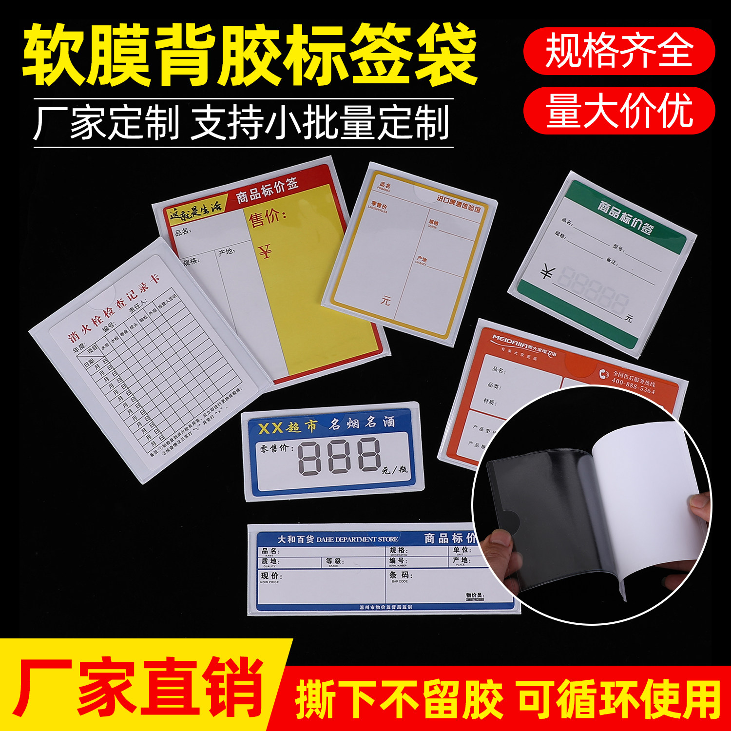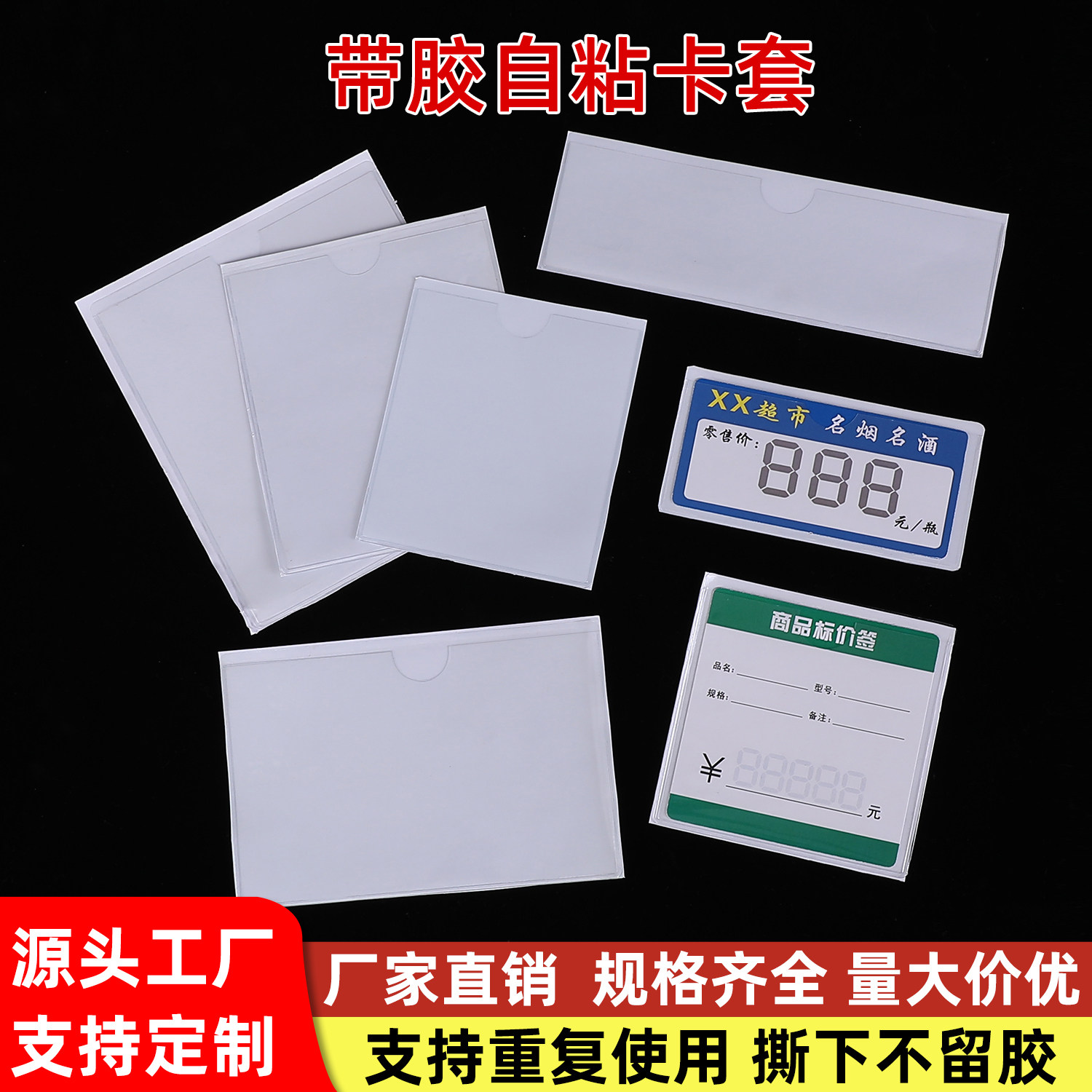 PVC透明塑料卡套仓库物料标识牌周转箱自粘背胶插卡袋商品价标牌