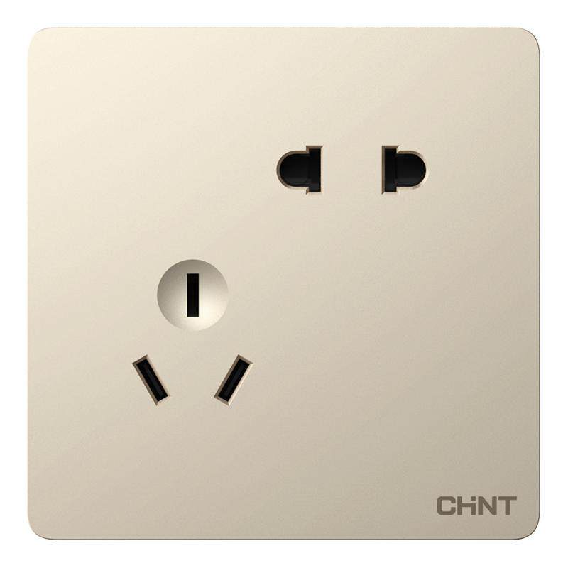 正泰开关插座面板86型墙壁暗装三孔金色家用5孔带usb一开双控五孔