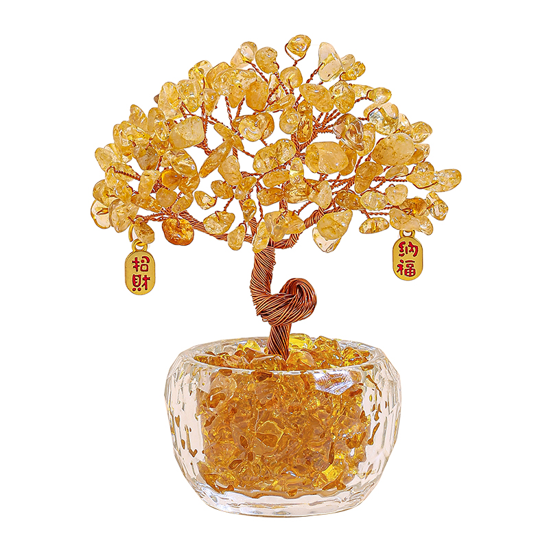 黄水晶发财树招财猫入户玄关摆件家居装饰办公室招财乔迁生日礼物