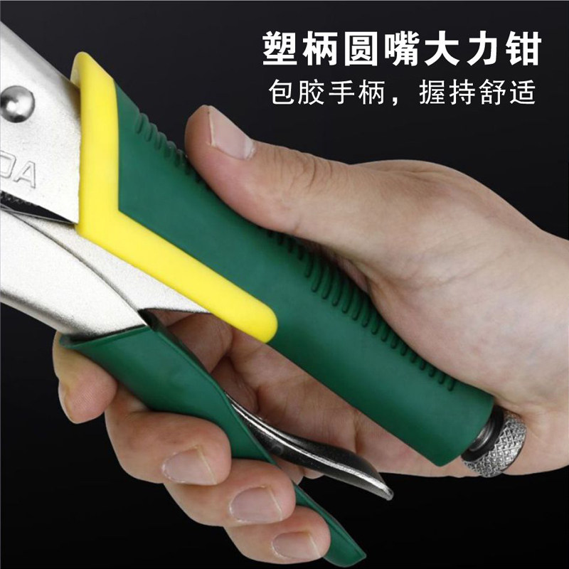 SD/胜达工具 圆嘴大力钳 圆咀固定钳 塑柄大开口螺杆调节省力钳子
