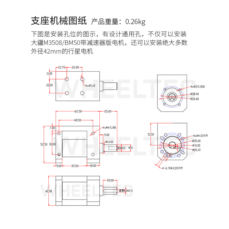 一体成型多功能支座BM50带减速器电机支架适大疆M3508双轴承输出